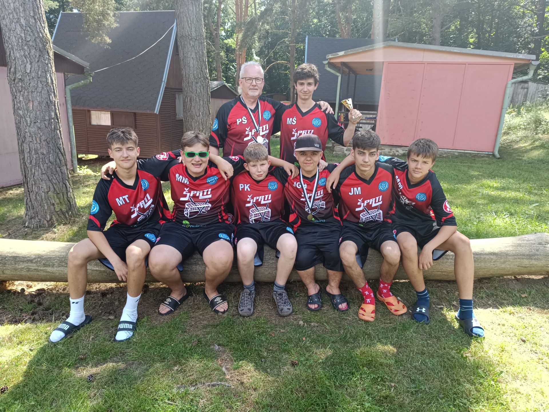 Naši junioři v základní skupině nezvládli zápas s KVAKY (M. Krumlov) a prohráli 1:2 a porazili Sportovku Litvínov 2:0. Rozhodoval poslední zápas ve skupině s obhájcem SVČ Most. Bylo to napínavé a všechny tři stoly hlásily remízu! To nám stačilo, protože do finále nás posunulo čisté konto proti Litvínovu. Mostečtí je totiž porazili 2:1. Finále se hrálo tentokrát formou 2x3 a Šprti ze Sokola Mutěnice nedali KVAKům z M. Krumlova šanci. Výsledek 5:1 hovoří jasně o tom, který tým je tady juniorským mistrem republiky ve šprtci!